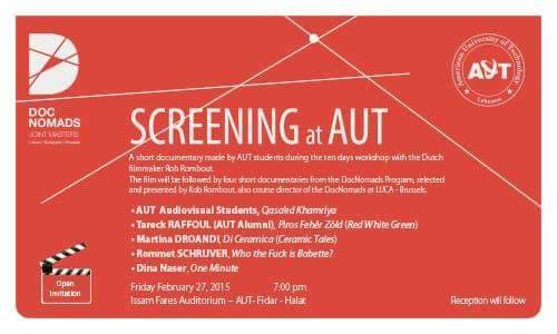 Students spent an average 10 hours a day to complete the task and showed their films to high school students and to the Audio Visual staff on Friday February 22 during the Masterclass given by Rombout to high school students who expressed an interest to study film making. Students from schools as far as ND de Jamhour spent Friday afternoon with Rombout and AUT alumni and students to learn what it takes to become a film maker.
